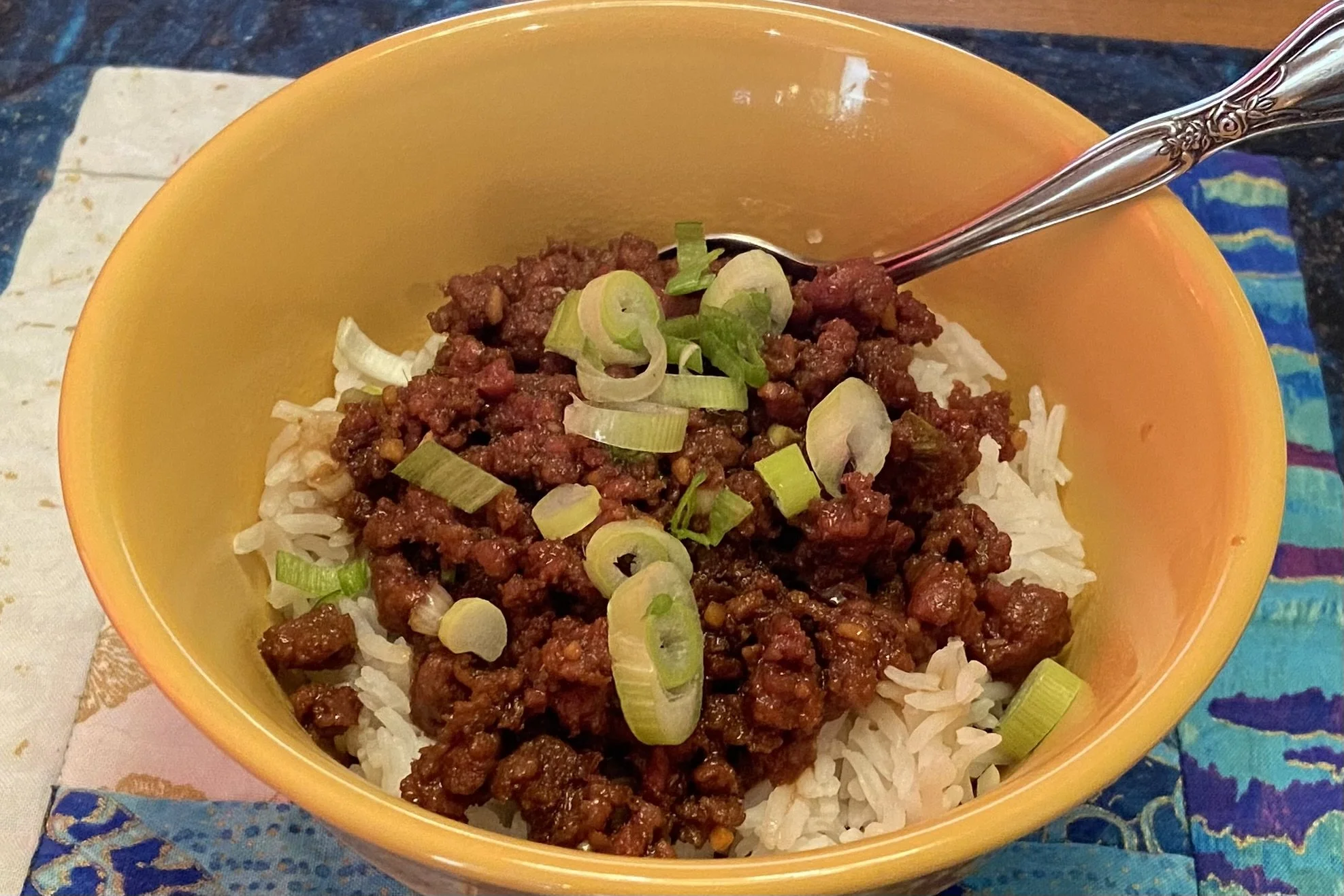 I haven’t posted a recipe for awhile, so I thought this might be a good time to publish another quick and easy dinner recipe. I call this one Quick Korean Beef, which I have adapted from some recipes I found on the interwebs. I have another version of this that uses cubed beef and cooks in the crockpot, but it’s more work, tastes about the same, and takes a lot longer. This dish takes about 20 minutes to make from start to finish, assuming you have rice already made up.