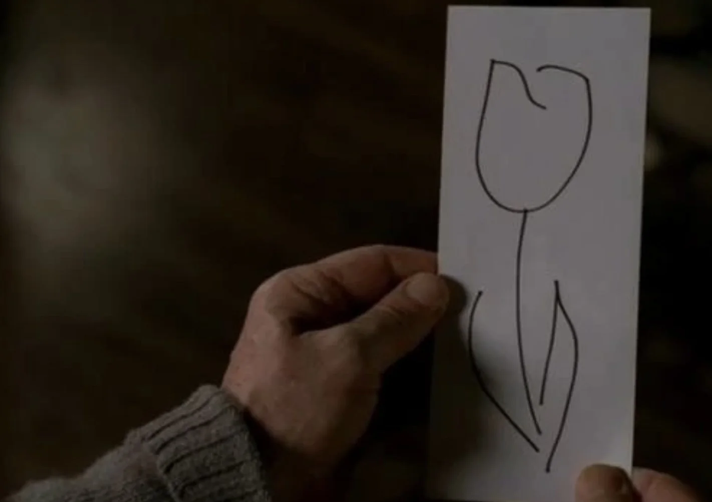 Cut back to the scene at the beginning of this season, where Peter and Olivia are playing with their young daughter in the park. This was the day that the Observers invaded from the future. We watch as the same events unfold, and then the moment of invasion passes with no sign of the Observers. So it is clear that Walter has succeeded. Walter had told Peter (in 2036) that if he succeeded, he and Michael would vanish from the timeline (to resolve time-travel paradox; I didn’t quite follow this explanation but okay) at the point where the Observers had originally invaded. So we know that Walter is gone now and Peter will never see him again. Peter arrives home to find a piece of mail from Walter. When he opens it, it contains a drawing of a white tulip. The actual same drawing from the Season 2 episode of the same name. It’s a very satisfying full-circle ending.