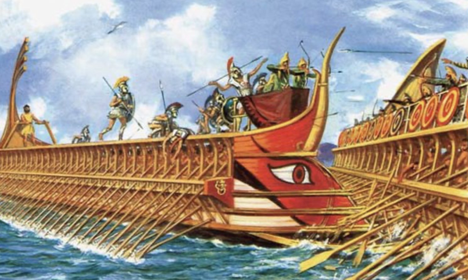 Topic one: when no physical remnants of ancient machines—catapults (see a snippet of the lecture here on Youtube) and cranes and siege towers and ships—can be found, how do researchers actually know what they looked like? How they worked and how they were built? Let’s look at the Greek fighting ship, for example: the trireme.