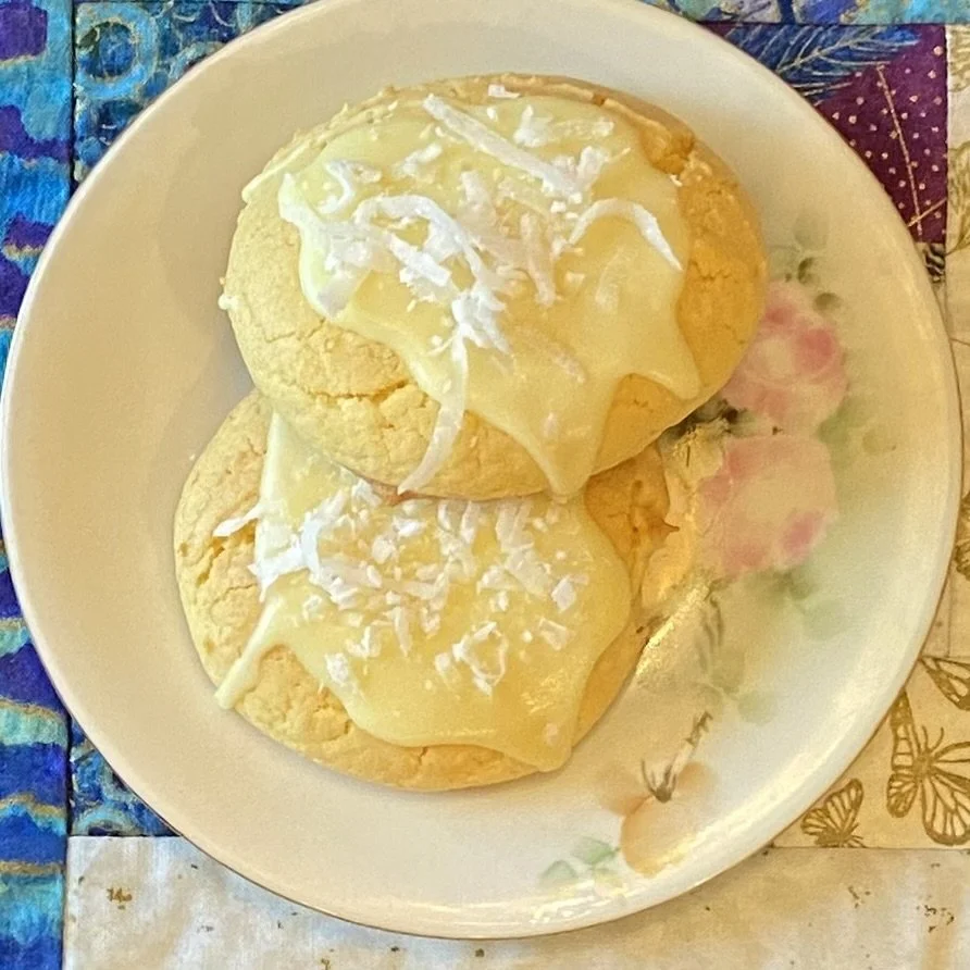 For the cookies I baked to take pictures for the blog, I used a regular yellow cake mix. Into the base recipe, I added the zest of two lemons, along with six drops of Doterra lemon essential oil (you could substitute maybe 1/4-1/2 tsp of lemon extract), and then baked the cookies. Once they were cooled, I juiced the lemons, and added the juice a little at a time to about two cups of powdered sugar until I liked the consistency. I also added a drop of yellow food coloring because it entertained me to do so. I frosted the cookies, then sprinkled a little sweetened coconut over the top. Coconut and lemon are a surprisingly delicious combination (you could also try my Sweet Rolls recipe, which has a similar flavor profile and is also…yes, you guess it, quick and easy). To answer the obvious question, yes, I could have made lemon cookies more easily with a lemon cake mix. But I used what I already had in the pantry.