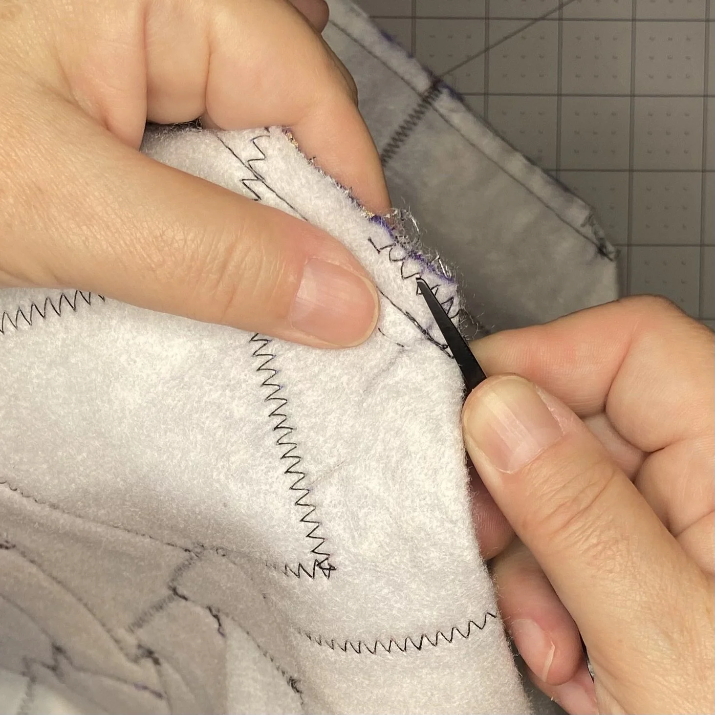 After the seams were finished and before moving on, I took the time to clip the excess fabric off the corners as best I could. It’s a weird angle, but it can be done if one clips carefully.