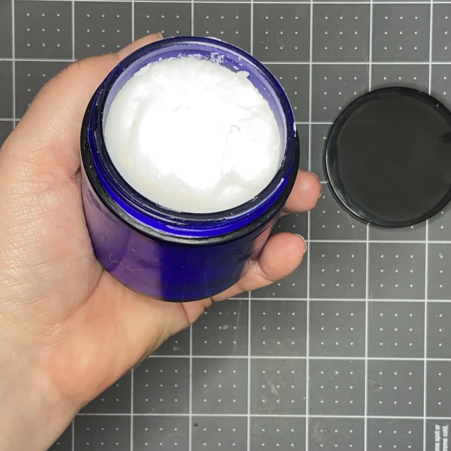 Combine the coconut oil and aloe vera gel either in a glass bowl suspended over a pan of simmering water (bain-marie, if you want to be fancy and French) or else heated in the microwave on low power in short bursts. You only want to heat the ingredients up enough that you can whisk them together smoothly. Then remove from the heat, and whisk in the essential oils. This yields roughly 4 ounces (and fits perfectly in these jars). It isn’t essential to keep this in the refrigerator, but it will last longer that way. When you need to use it, it’s best to take it out of the fridge for long enough for it to soften a little…the mixture is rock hard at refrigerator temperatures. But still somewhat cool from the fridge, this mixture is very soothing on a hot sunburn.