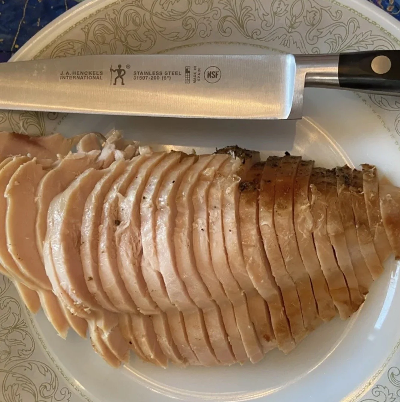 I love this method. I even like doing the cooking the day before Thanksgiving, doing all the carving, and then reheating the slices of meat on the big day. The only drawback to this method is that you can’t make the gravy in the same pan that you used to cook the bird. However, you can pour off the drippings into a big pot on the stove and make it that way. All the flavor and just one extra pan to wash. No big deal. Perfectly acceptable tradeoff, in my mind.
