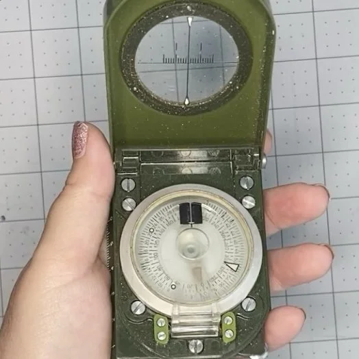 As my father’s birthday approaches, I’ve been pondering a new art project. Actually, I’ve been pondering a new project for several months, but since I’m not much of an actual “artist,” my projects take a loooong time, most of which is spent thinking about possibilities. I finally got a starting point when I bought an old compass off of eBay. What any trailblazer needs is a compass…and either a map or materials to make a map. You know, like Lewis and Clark! Okay, they also had a few expert guides, but they definitely had compasses and they definitely made a lot of maps. Here is an interesting site that showcases their cartography.