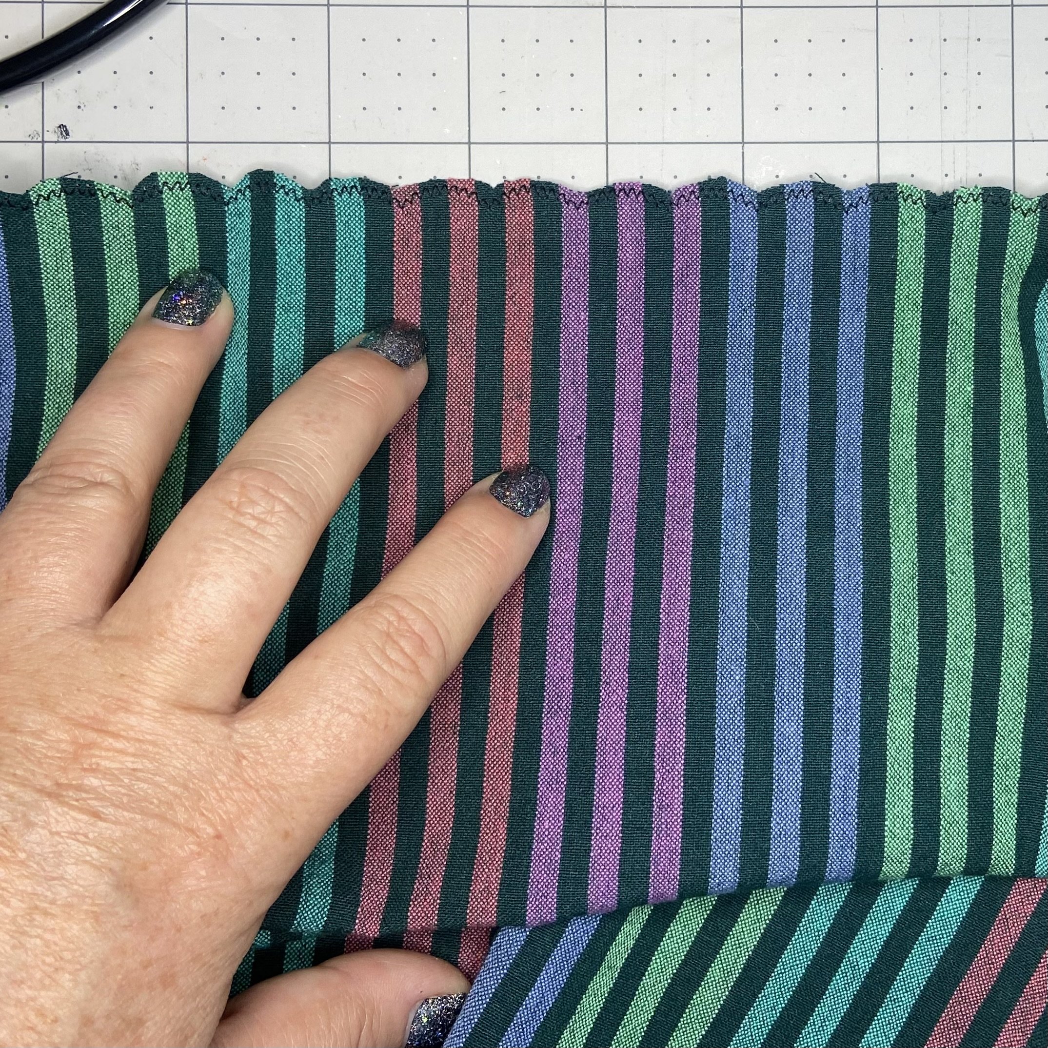 I initially thought that instead of hemming the edges, I’d do a decorative edge stitch and then trim away the extra fabric. And it looked kind of pretty but ultimately, I went with a double fold hem in most places.